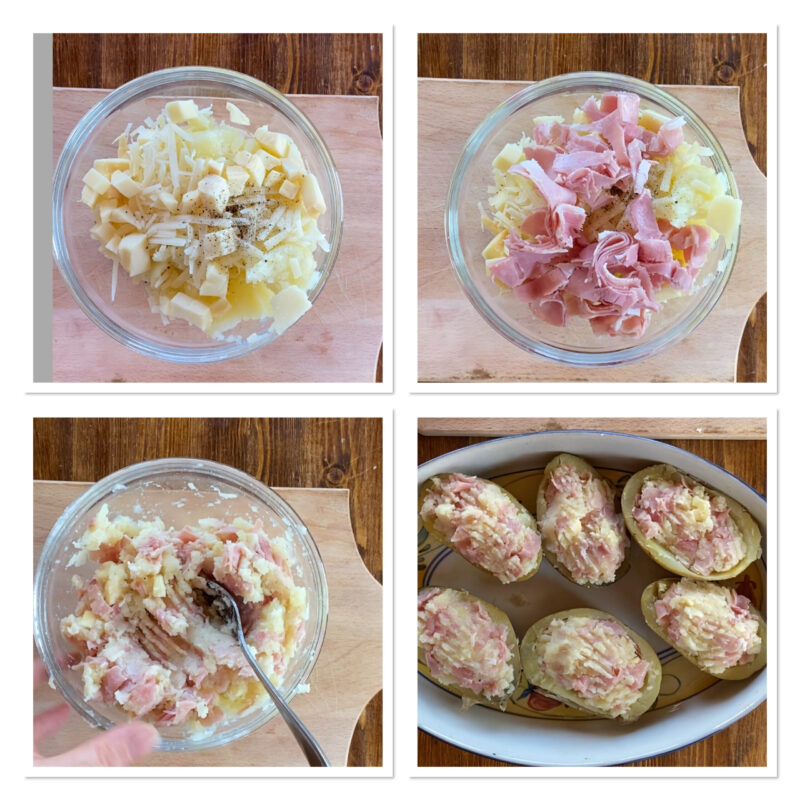 Wie man gefüllte Kartoffeln mit Kochschinken und Provola macht