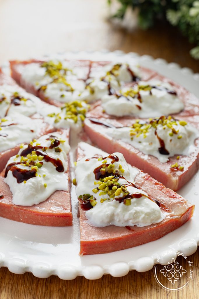 Die gegrillte Mortadella mit Stracciatella und Balsamico-Glasur ist eine schmackhafte Vorspeise und ein köstliches Hauptgericht, einfach, preisgünstig und attraktiv – perfekt für viele Gelegenheiten. Sehr leicht und schnell zuzubereiten, optisch sehr eindrucksvoll und lecker: Die gegrillte Mortadella ist in wenigen Minuten fertig und wird mit ihrer leuchtenden Farbe alle begeistern. Ganz zu schweigen vom perfekten Geschmack, der durch die Kombination von Mortadella, Stracciatella, Pistazien und Balsamico-Glasur entsteht. Ideal auch als schnelle Vorspeise zu Ostern, für Weihnachten und für alle Gelegenheiten – die gegrillte Mortadella passt perfekt zu einem Buffet oder als rustikaler, schmackhafter Aperitif. Ihr könnt die Mortadella in einer Grillpfanne, über der Glut, auf dem Barbecue oder in einer normalen Pfanne auf dem Herd zubereiten; in jedem Fall wird das Ergebnis ausgezeichnet. Ihr könnt sie pur genießen oder – wie ich – mit Stracciatella, gehackten Pistazien und Balsamico-Glasur verfeinern. Ein echter Hingucker! Jetzt aber ab in die Küche, und lasst uns gemeinsam loslegen. Zuvor noch ein Hinweis: Wenn ihr über alle meine Rezepte auf dem Laufenden bleiben wollt, könnt ihr meiner Facebook-Seite (hier) und meinem Instagram-Profil (hier) folgen.