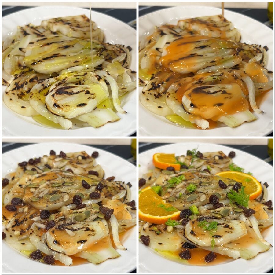 Diese gegrillte Variante setzt stattdessen auf eine eher reduzierte Zubereitung: das Grillen verstärkt den feinen Fenchelgeschmack, während die Orangensauce eine frische, zitrusartige Note hinzufügt, die sowohl warm als auch bei Zimmertemperatur perfekt passt. Ein einfaches und vielseitiges Rezept, ideal als Beilage zu Fleischgerichten oder Fisch, aber auch pur sehr lecker. Los geht’s: so würzt du den gegrillten Fenchel nach der Zubereitung. Bevor wir jedoch loslegen, ein Hinweis: wenn du auf dem Laufenden bleiben möchtest, kannst du meiner Facebook-Seite (hier) und meinem Instagram-Profil (hier) folgen.