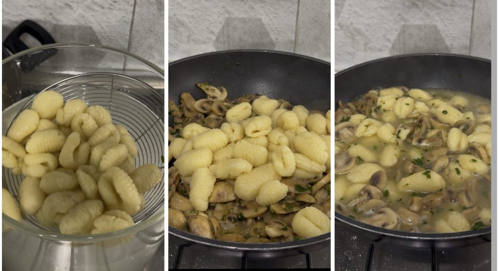 Zubereitung der Gnocchi mit sautierten Pilzen