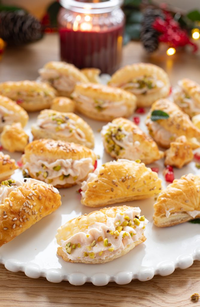Herzhafte Blätterteig-Muscheln mit Lachscreme sind eine Vorspeise zum Beeindrucken, einfach, schnell und lecker – ideal für den Heiligabend oder das Silvesterdinner. Optisch eindrucksvoll und hübsch anzusehen, schmecken sie vor allem: knusprig, raffiniert und würzig. Ihr könnt sie nach Belieben füllen; ich habe mich für eine köstliche geräucherte Lachscreme entschieden. Für diese schönen gefüllten Blätterteigmuscheln braucht ihr keine Förmchen, nur einen einfachen Blumen-Ausstecher wie meinen oder ganz einfach einen runden Ausstecher. Mit nur einer Rolle Blätterteig zaubert ihr in etwa 40 Minuten 24 Stück – ein echter Hingucker auf dem Festtagstisch! Bereit für die Küche? Los geht’s, aber vorher eine Erinnerung: wenn ihr über neue Rezepte informiert bleiben wollt, könnt ihr meiner Seite Facebook und meinem Profil Instagram folgen.