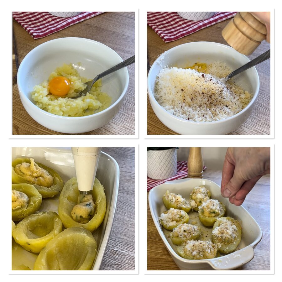 Schritte zur Zubereitung der Kartoffel-Boote mit Käse
