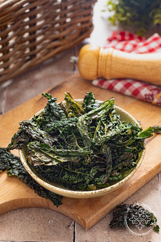 Wenn ihr solche leichten, knusprigen Zubereitungen mögt, probiert auch meine Apfelchips aus der Heißluftfritteuse. Der Schwarzkohl aus dem Ofen verändert seine Textur komplett: die Blätter werden leicht und brüchig, behalten aber ihr rustikales Aroma. Eine einfache Zubereitung, die perfekt zu den einfachen Rezepten mit Schwarzkohl passt, wie zum Beispiel dem Schwarzkohl-Pesto, ideal, um eine Beilage mit Schwarzkohl mal anders auf den Tisch zu bringen.