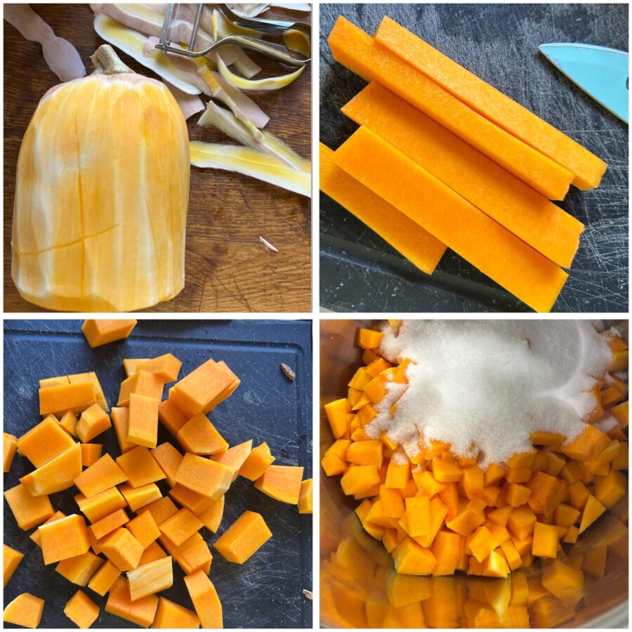 Zubereitung der Kürbiskonfitüre mit Amaretto