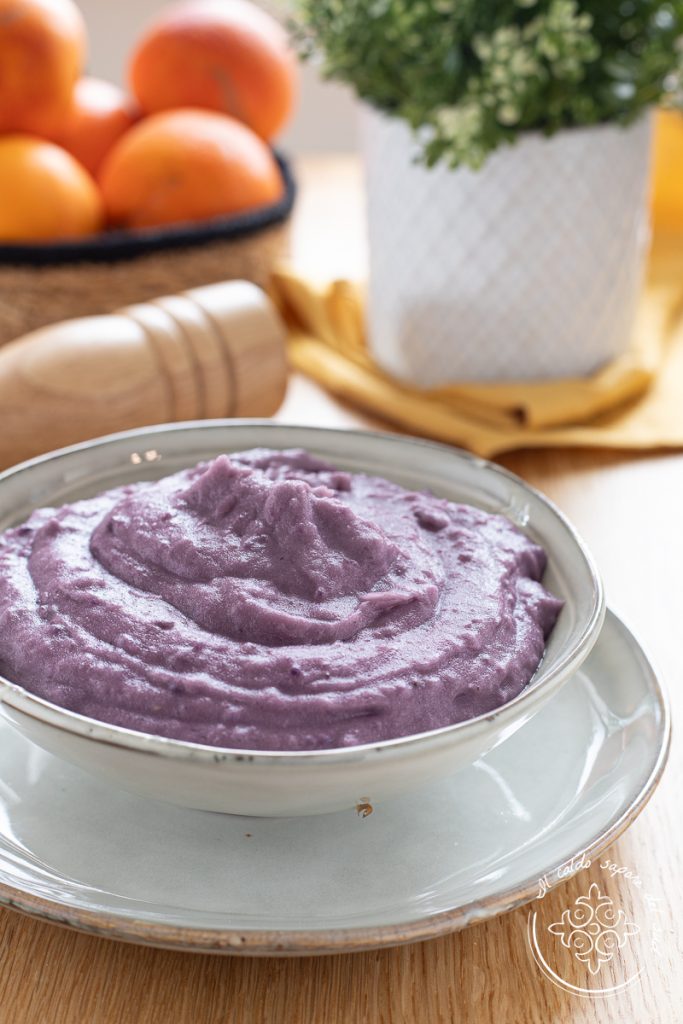 Lila Kartoffelpüree, cremig, farbenfroh und lecker. Wisst ihr, was lila Kartoffeln sind? Die lila Kartoffeln sind eine sehr bekannte und beliebte Knolle, die im Alltag als Basis für viele originelle und schmackhafte Rezepte verwendet werden kann und sich auch perfekt eignet, um raffinierte und elegante Gerichte zu servieren, die unsere Gäste überraschen. Die lila Kartoffeln haben einen etwas süßeren Geschmack als herkömmliche Kartoffeln, eine mehligere Konsistenz und eignen sich zum Kochen, Dämpfen, Frittieren und zur Verarbeitung zu Gnocchi. Heute habe ich mit dieser Kartoffelsorte ein leckeres Rezept zubereitet: das lila Kartoffelpüree, eine zarte und umhüllende Beilage, ideal zu Fleischgerichten, Käse und Wurst. Bereit für das Rezept? Ab in die Küche – ihr werdet sehen, was für ein Hingucker dieses lila Kartoffelpüree ist!!