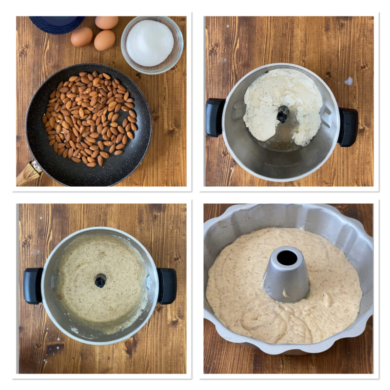 Der Mandelkuchen gehört zu unserer köstlichen Sammlung der Riesen-Rührkuchen der Großmutter (Riesen-Rührkuchen der Großmutter), ist aber keine klassische Ciambella, sondern eine Variante mit heißer Milch im Teig, die, wie die Zitronen-Ciambella mit heißer Milch, gerade durch die Zugabe der kochenden Milch nach dem Backen besonders fluffig wird. Ich habe diesen großen Mandelkuchen zubereitet, indem ich alles in den Behälter des Mixers gefüllt und den Teig anschließend direkt in die Form gegossen habe; ihr könnt aber auch direkt Mandelmehl verwenden, am besten geröstet.