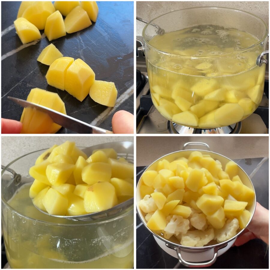 Für ein optimales Ergebnis ist es wichtig, Blumenkohl und Kartoffeln beim Vorkochen nicht zu lange zu garen: Sie sollten zart, aber noch kompakt sein, damit sie nach dem Backen ihre Konsistenz behalten. Überschüssiges Wasser sollte ebenfalls sorgfältig entfernt werden, um ein wässriges Ergebnis zu vermeiden.