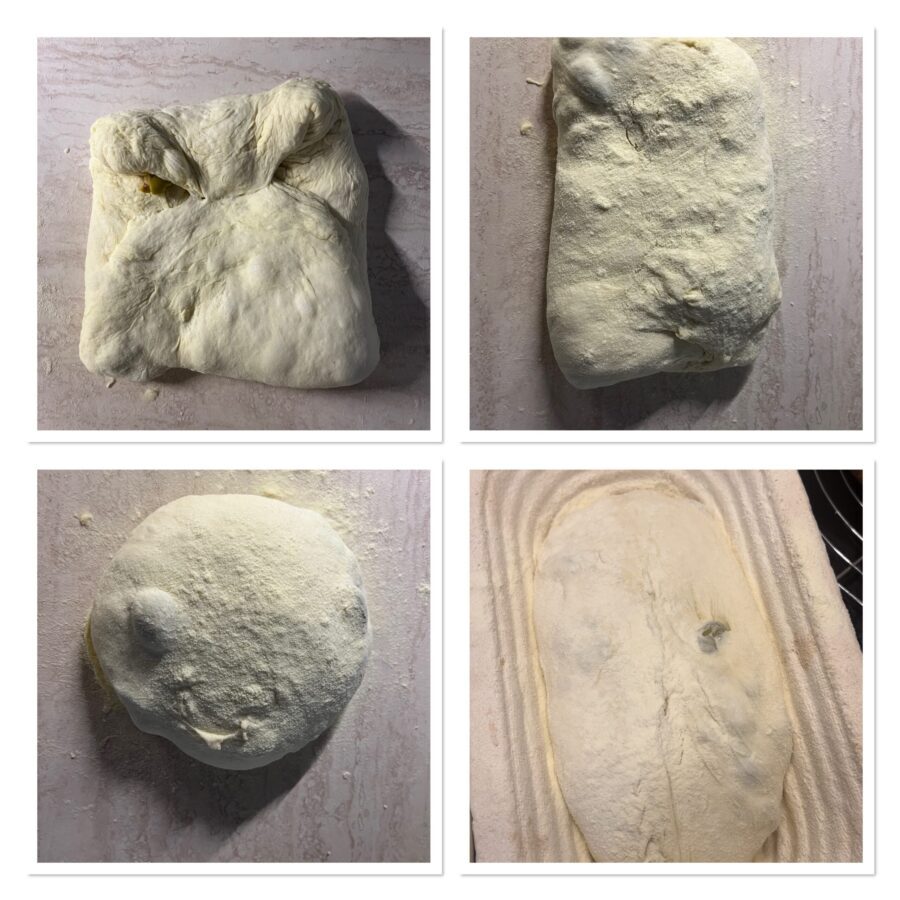 • Dreht sie um, so dass die Naht nach unten zeigt, formt mit den Händen erneut kleine Laibe und legt sie zum Gehen in eure Gärkörbchen, die ihr gut bemehlt habt, mit der Naht nach oben.