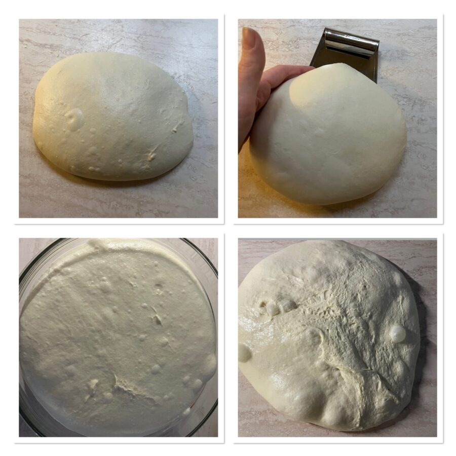 Nehmt den Teig wieder auf und formt eine Kugel; jetzt sollte er glatt und homogen sein.
