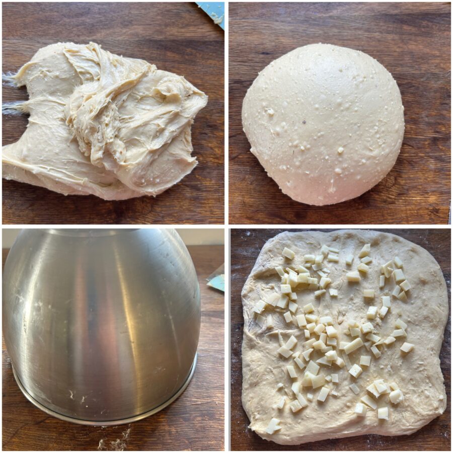 Den Teig wieder zusammenklappen und erneut zu einer Kugel formen.