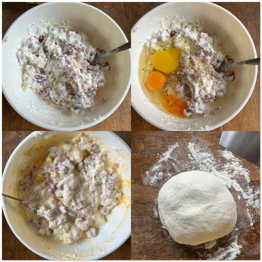 Wie bereits beschrieben, können Sie die Hülle der Pizza chiena mit Hefeteig oder mit leicht süßem bzw. salzigem Mürbeteig zubereiten. Ich bevorzuge den Hefeteig, weil ich die weiche Konsistenz liebe. Den Teig können Sie von Hand kneten oder die Küchenmaschine verwenden – das erspart Mühe.