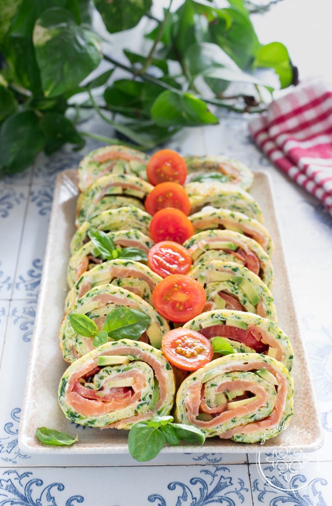 Rolle aus Zucchini-Omelett mit Lachs und Philadelphia