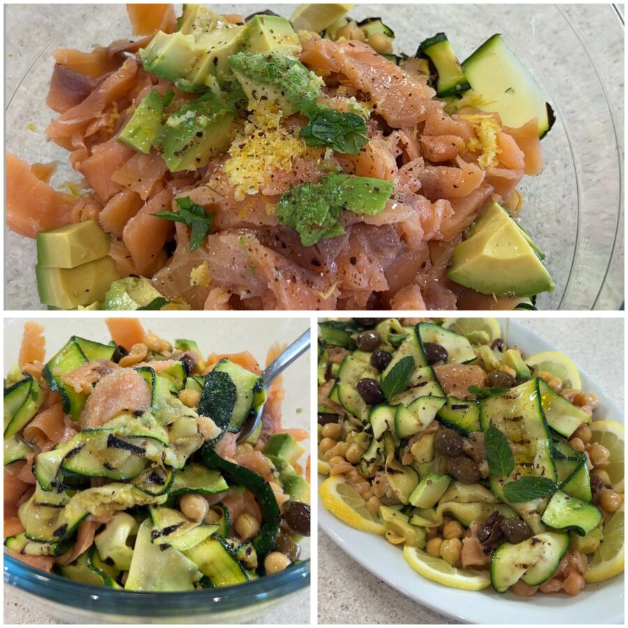 Salat mit gegrillten Zucchini, Lachs und Kichererbsen