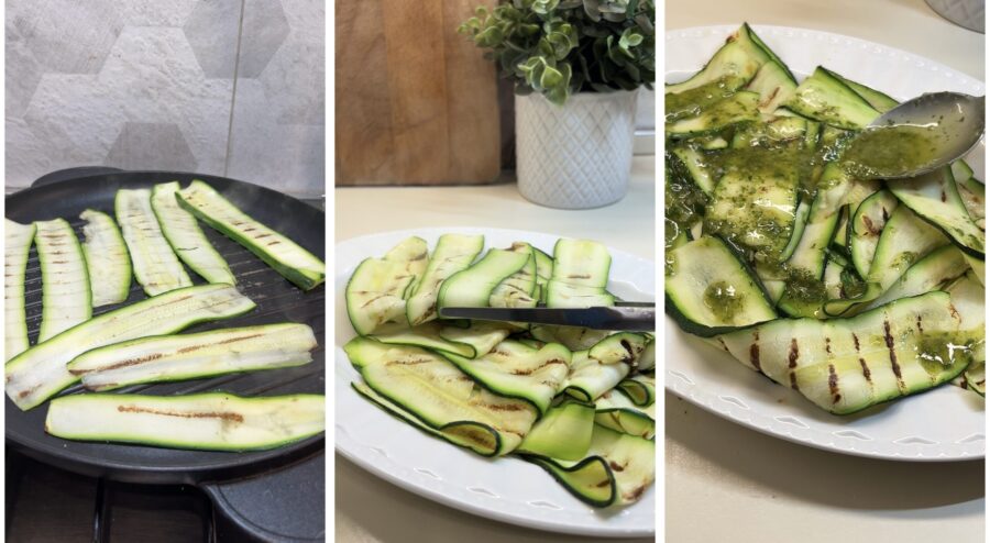 Zubereitung der marinierten gegrillten Zucchini mit Thunfisch
