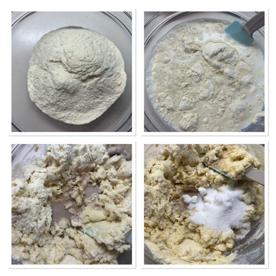 • Zum Schluss Salz und Safran unterrühren. Den Teig so verarbeiten, dass er am Ende sehr weich und klebrig ist. An einem warmen Ort zugedeckt gehen lassen, bis sich das Volumen verdoppelt — das dauert etwa 2 bis 3 Stunden.