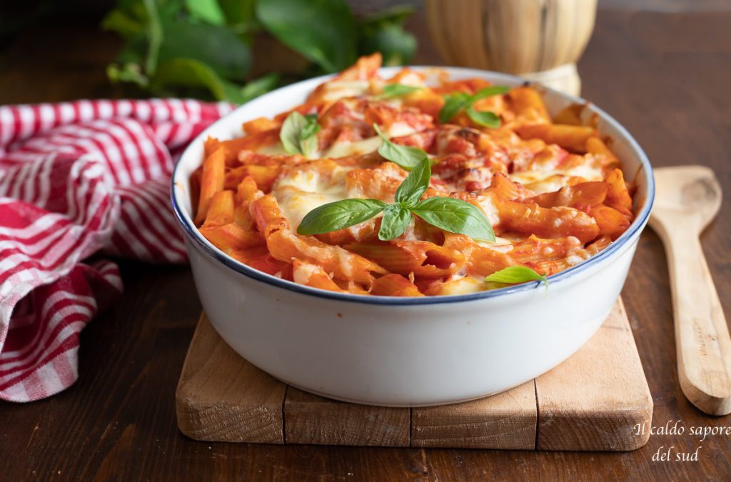 Schneller Nudelauflauf mit Mozzarella und Tomatensauce, ein vegetarischer Nudelauflauf, einfach und lecker. In unserer Familie gibt es nur einen Nudelauflauf, und zwar mit unserem Ragù alla siciliana, etwas anders als das typische Ragù alla bolognese, aber manchmal fehlt die Zeit und um die Kinder zufriedenzustellen, muss man sich etwas einfallen lassen.