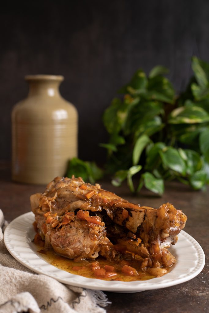 Schweinshaxe in Bier, im Topf geschmort, sehr zart und köstlich, eine ofenlose Version der klassischen Schweinshaxe aus dem Ofen mit Bier. Wie man die Schweinshaxe im Topf zubereitet, damit sie schön zart und lecker wird? Ganz einfach: Man benötigt nur wenige Zutaten, einen guten Topf und etwas Geduld. Die Schweinshaxe aus dem Ofen mit Kartoffeln ist ein Rezept, das ich sehr mag, aber wenn ich den Ofen nicht anschalten möchte, koche ich sie lieber im Topf; so wird sie genauso zart, das Fleisch löst sich leicht vom Knochen und man spart Strom. Eines der Rezepte, das ich liebe, ist die Schweinshaxe in Bier, so wie meine Oma sie zubereitet hat. Es ist eine wirklich ganz einfache Zubereitung, die keiner besonderen Vorsicht bedarf und perfekt ist, wenn man ein zart geschmortes Haxen-Gericht möchte. Bereit, es zusammen zuzubereiten? Ab in die Küche — aber vorher erinnere ich euch: Wenn ihr über meine Rezepte auf dem Laufenden bleiben wollt, könnt ihr meine Facebook-Seite (hier) und mein Instagram-Profil (hier) folgen.