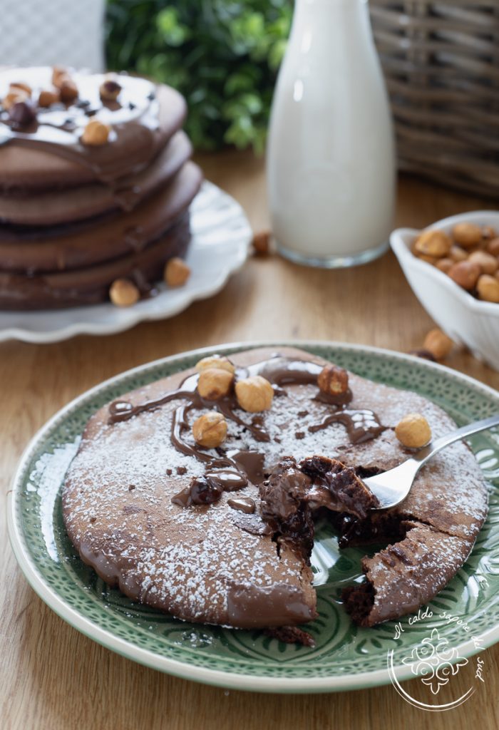 Schokoladenpfannkuchen, gefüllt mit Nutella oder womit ihr wollt. Riesige Schokopfannkuchen, hoch, wunderbar fluffig und mit Nutella gefüllt, die weich und cremig bleibt – perfekt als Snack oder zum Familienfrühstück, ein Genuss aus Geschmack und Zartheit! Wenn Pfannkuchen und Nutella oder streichfähige Haselnusscremes eure Leidenschaft sind, werden euch diese Maxi-Nutella-Pfannkuchen umhauen!! Wollt ihr sie auch mit mir zubereiten? Ab in die Küche – aber vorher erinnere ich euch: Wenn ihr über alle meine Rezepte auf dem Laufenden bleiben wollt, könnt ihr meiner Facebook-Seite (hier) und meinem Instagram-Profil (hier) folgen!