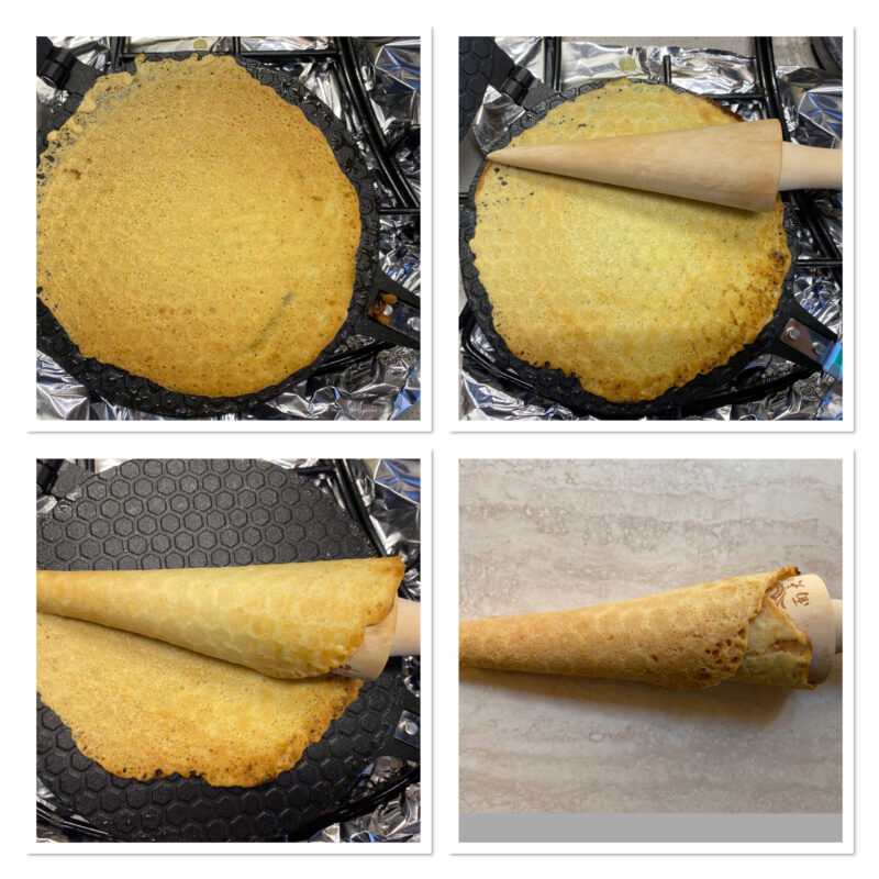 Haltet die Waffel gerollt, bis sie abgekühlt, fest und stabil geworden ist.