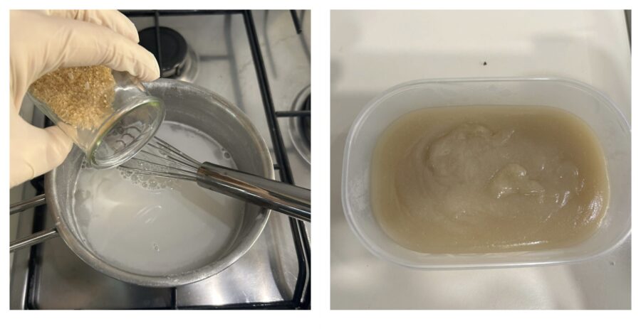 Im Mixer püriert ihr die geschälte Zwiebel, den Knoblauch und den Ingwer, bis eine glatte, aromatische Paste entsteht. Zerkleinert den Chili oder verwendet Chilipulver.Gebt den Zucker zusammen mit dem Reismehl in einen Topf (ich habe Vollkornreismehl verwendet). Erhitzt es und lasst es unter ständigem Rühren eindicken. Lasst die Reiscreme abkühlen: Sie dient durch die enthaltenen Zucker als Unterstützung der Fermentation.