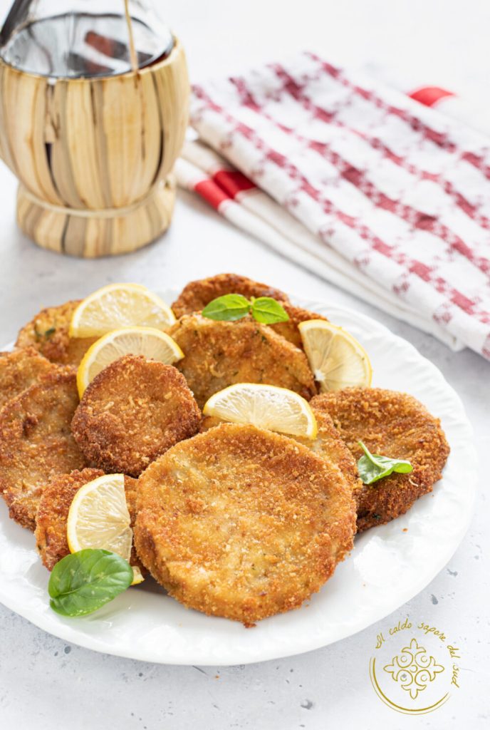 Die panierten, frittierten Auberginen‑Schnitzel nach sizilianischer Art, goldbraun und knusprig, sind ein tolles vegetarisches Hauptgericht und eine leckere Beilage. Sie eignen sich auch wunderbar als Vorspeise und gehören zur sizilianischen Küche und zu Omas Rezepten sowie zu den vielen Arten, paniere Schnitzel auf kreative Weise zuzubereiten.