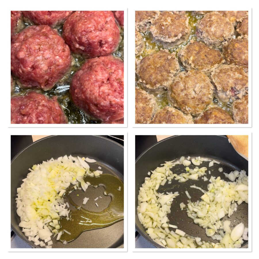Bratet die Fleischbällchen in Olivenöl, bis sie goldbraun sind und eine schöne, feste Kruste haben.