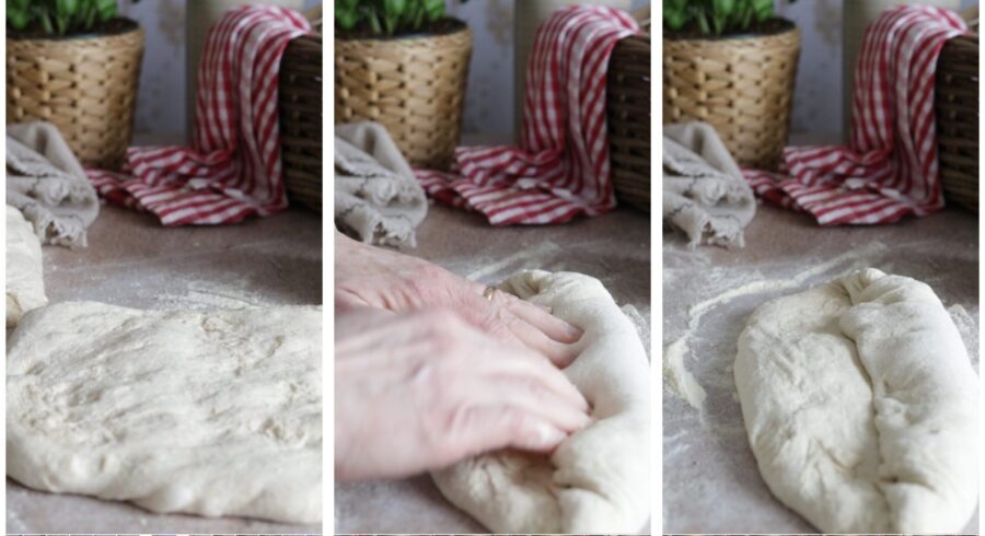 Für dieses Rezept habe ich das Brot mit Sauerteig gemacht. Wenn ihr keinen Sauerteig habt, verwendet 12 g Trockenhefe/frische Hefe, aufgelöst in etwas lauwarmem Wasser. Mit Backhefe verkürzen sich die Gehzeiten auf insgesamt 2–3 Stunden. Ihr könnt den Teig mit der Küchenmaschine, dem Handmixer mit Knethaken oder von Hand zubereiten; wenn ihr von Hand arbeitet und hohe Hydratationen schwer handhabt, verwendet nur 450 g Wasser.