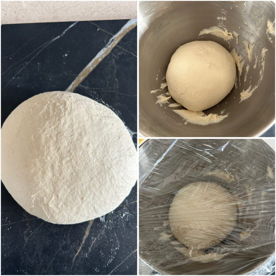 Knetet weiter, bis ihr eine glatte, weiche und elastische Masse habt, die sich gut von den Wänden löst. Formt eine Kugel, bedeckt sie und lasst sie an einem geschützten Ort gehen, bis sich das Volumen verdoppelt hat.