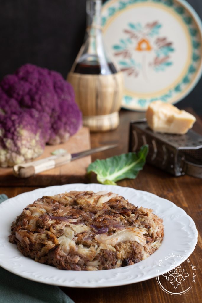 Wie seine Verwandten, die „versunkenen Brokkoli„, aber weniger „vornehm“ – so sehr, dass man sie „bastaddi“ nannte – gehören sie ebenso zur alten Küche Catanias. Sie sind köstlich als Beilage, Vorspeise, als Sauce für Pasta und als Füllung für die traditionelle Scacciata. Trotz ihres unvorteilhaften Spitznamens ist der violette Blumenkohl aus Catania wirklich ein vielseitiges Gemüse mit zartem Geschmack. Im Winter findet man ihn auf jedem Marktstand der Region. Wie viele blau- oder violettfarbene Obst- und Gemüsesorten hat er entzündungshemmende, antiaggregierende, mikrozirkulationsschützende und antioxidative Eigenschaften und enthält Carotinoide, Vitamin C, Kalium und Magnesium. Also lasst ihn uns nicht von unseren Tischen wegdenken und bereitet ihn auf alle möglichen Arten zu, vor allem aber „versunken“. Bevor ihr in die Küche geht: Wenn ihr über neue Rezepte auf dem Laufenden bleiben wollt, könnt ihr meiner Facebook-Seite (hier) und meinem Instagram-Profil (hier) folgen. Außerdem findet ihr in meiner Sammlung Einfache und schnelle Rezepte mit Blumenkohl viele weitere leckere Ideen mit diesem vielseitigen Wintersalatgemüse – und wenn ihr Sizilien liebt, solltet ihr euch das Rezeptbuch Sizilianische Küche und Oma-Rezepte nicht entgehen lassen!
