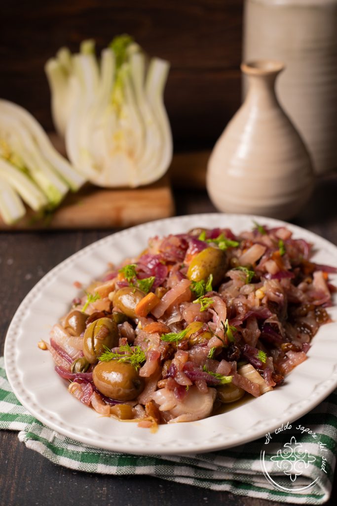 Heute geht es um die Fenchel-Caponata, ein einfaches, leckeres Beilagen-gericht, das von einem Klassiker der sizilianischen Küche inspiriert ist: der Caponata di melanzane. Unter all den Herbst- und Winterrezepten, die ich bisher gemacht habe, fehlte noch eine schöne und schmackhafte winterliche Caponata mit Fenchel, ähnlich der sizilianischen Kürbis-Caponata, aber heute habe ich das nachgeholt! Als Süditalienerin liebe ich die sizilianische Küche mit ihren Großmutterrezepten, und dazu darf natürlich die Caponata di melanzane mit ihrem köstlich süß-sauren Geschmack nicht fehlen. Da wir jedoch schon tief im Herbst und fast im Winter sind und die Auberginen nicht wirklich Saison haben, präsentiere ich euch heute meine eigene Variante auf Fenchelbasis, köstlich wie die Fenchel „alla mediterranea“ in der Pfanne oder wie die Zwiebeln und Fenchel mit Balsamico-Essig. Bereit, sie mit mir zu entdecken? Dann ab in die Küche — dieses mediterrane, vegane und vegetarische Rezept wird euch begeistern. Wenn ihr auf dem Laufenden bleiben wollt, folgt meiner Facebook-Seite (hier) und meinem Instagram-Profil (hier).