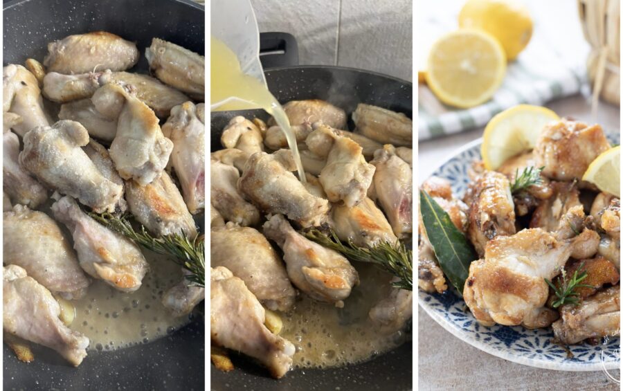 Zitronenhähnchenflügel in der Pfanne, ein , perfekt für die ganze Familie. Wir haben viele Rezepte mit Hähnchen und der säuerlichen Note der Zitrone gekocht, von den Zitronen-Ingwer-Hähnchenstückchen über die Zitronen-Hähnchen-Schnitzel bis hin zum ganzen Brathähnchen mit Zitrone und den Zitronen-Hähnchenbällchen oder den Hähnchenschnitzeln mit Butter und Zitrone, aber die Flügel haben uns bisher gefehlt. Nachdem wir die Hähnchenflügel mit Paprika, die Hähnchenflügel aus der Heißluftfritteuse und die Hähnchenflügel in BBQ-Sauce zubereitet haben, bereiten wir heute zitronige Hähnchenflügel, in der Pfanne gebraten zu – ein einfaches, sehr günstiges und unglaublich leckeres Gericht, das die ganze Familie begeistern wird. Meine Kinder haben eine richtige Leidenschaft für Flügel, sie mögen sie lieber als Schenkel oder Brust, daher kaufe ich sie ziemlich oft. Vor einigen Tagen wollte ich sie für frittierte Hähnchenflügel aus der Heißluftfritteuse verwenden, aber aus dem einen oder anderen Grund wurde es spät, die Kinder hatten Hunger und ich habe meine Entscheidung geändert und sie schnell in der Pfanne mit Zitronensaft zubereitet: eine einfachere Version, die sie aber nie enttäuscht! Wenn ihr auch nie wisst, wie man Hähnchen zubereitet und nach originellen Ideen sucht, empfehle ich, es auszuprobieren – ich bin sicher, es wird euch gefallen! Ab in die Küche: wir zeigen euch jetzt, wie man zitronige Hähnchenflügel in der Pfanne macht. Wenn ihr auf dem Laufenden bleiben wollt, könnt ihr meiner Facebook-Seite (hier) und meinem Instagram-Profil (hier) folgen.