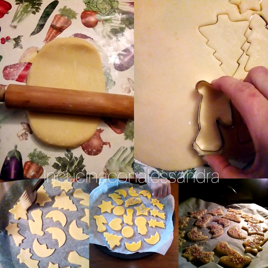 Das Mehl mit dem Backpulver sieben und zu einem Berg formen. In die Mitte Eier, Zucker geben und anfangen zu kneten, dann die geschmolzene, leicht abgekühlte Butter hinzufügen und weiter kneten, während man nach und nach die anderen Zutaten hinzufügt, bis ein glatter, homogener Teig entsteht. Den Teig teilen und mit dem Nudelholz auf eine Dicke von einem halben Zentimeter ausrollen. Die Ausstechformen (Weihnachtsmotive sind ideal) verwenden und die Kekse ausstechen. Auf ein Backblech mit Backpapier legen. Die Kekse mit dem verquirlten Eigelb bestreichen und mit bunten Perlen dekorieren. Im Ofen ca. 10/12 Minuten bei 180°C backen.
