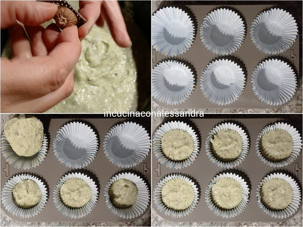 Zuerst die Brokkoli gründlich reinigen und waschen, dann in Stücke teilen, um die Kochzeit zu verkürzen, in eine Kasserolle geben und kochen. Sobald sie gar sind, abseihen und in eine Schüssel geben und mit einem Stabmixer pürieren, die Eier hinzufügen und gut mit einem Löffel vermischen, dann den Ricotta und einen Esslöffel Pecorino hinzufügen, dann Salz, Pfeffer und Muskatnuss hinzufügen und das Ganze erneut pürieren. Nehmen Sie die Muffinform und geben Sie in jede Form ein Muffin-Papierförmchen, mit einem Löffel die vorbereitete Mischung in jede Form bis zu drei Vierteln einfüllen. Wenn alle gefüllt sind, den restlichen Pecorino darüber streuen. Im vorgeheizten Ofen bei 180°C etwa 20/25 Minuten backen oder bis zur gewünschten Bräunung.