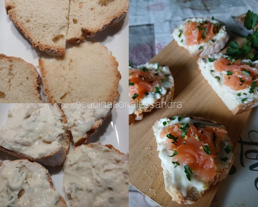 Die Crostini mit Räucherlachs und Gorgonzola sind eine Vorspeise, die sehr appetitlich ist und sich ideal für die Feiertage oder jede besondere Gelegenheit eignet. Sie sind auch bestens für Aperitifs und Buffets geeignet.