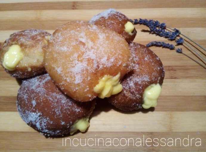 Sie sind köstlich, sie erfreuen das Auge und vor allem den Gaumen mit Süße, gefüllt mit der Creme sind sie eine Explosion von Köstlichkeit. Die Krapfen mit Creme werden allen schmecken, auch den Kindern..