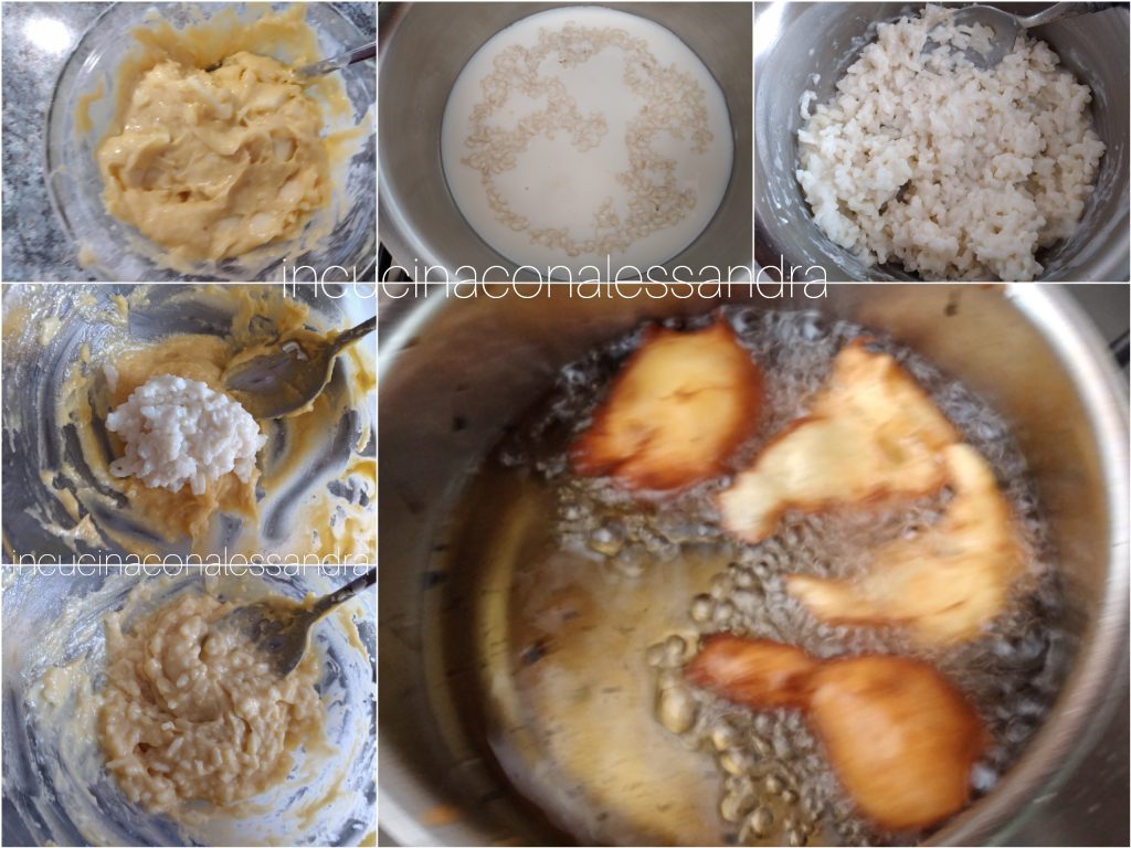 Kochen Sie den Reis in der Milch und geben Sie nach und nach etwas Wasser hinzu, während der Reis die Milch aufnimmt. Fügen Sie die Vanilleschote hinzu und kochen Sie weiter, bis der Reis schön weich ist. Lassen Sie ihn abkühlen. Fügen Sie die verquirlten Eier hinzu und mischen Sie gut, dann geben Sie nach und nach die restlichen Zutaten hinzu, unter ständigem Rühren. Lassen Sie die Mischung mindestens eine Stunde ruhen, sonst bindet der Reis nicht mit den anderen Zutaten.