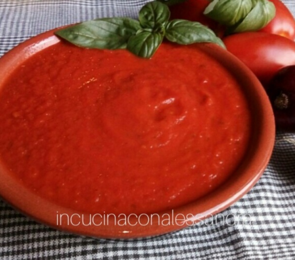 Jetzt ist die richtige Zeit, um sie zu machen, da es eine Fülle von frischen Tomaten gibt. Auf meine Weise, weil ich statt der San Marzano Tomate die Canestrino oder Ochsenherz nehme und keinen Sellerie verwende.
