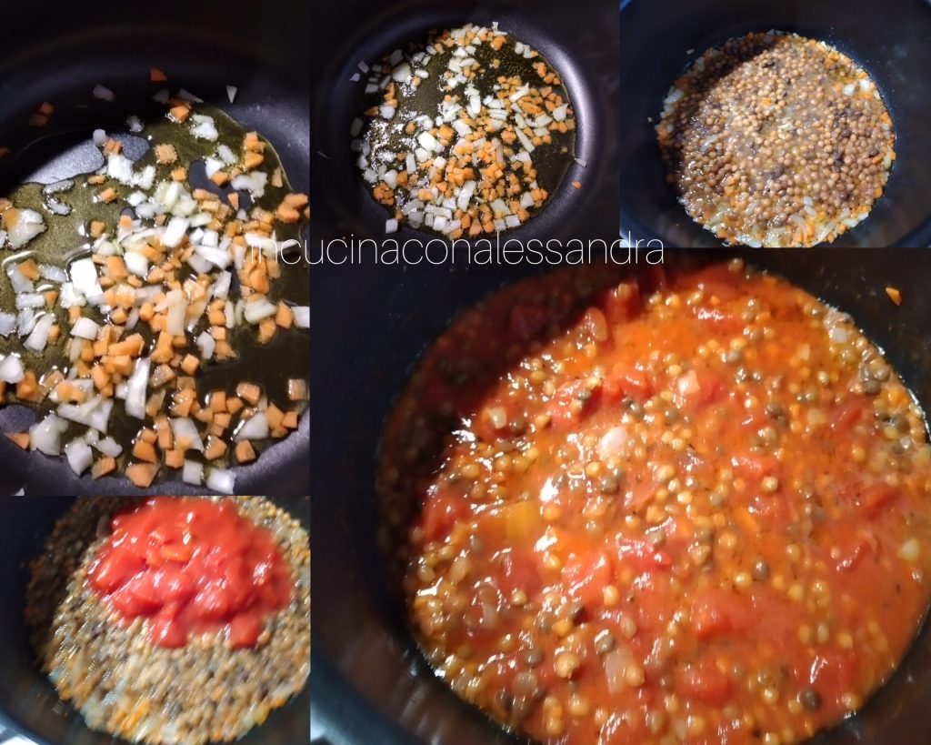 Vegetarische Linsenragout wollte ich ausprobieren, ich war nicht so überzeugt und das Ergebnis ist wirklich lecker geworden. Als ich es meiner Tochter, die Vegetarierin ist, probieren ließ, war sie von der Köstlichkeit überrascht. Es ist ein vegetarisches Ragout, besser gesagt vegan, da es komplett pflanzlich ist. Es ist sehr einfach und schnell zuzubereiten, reich an Geschmack und sehr proteinreich, ideal für eine proteinreiche Diät. Hervorragend zum Würzen von Pasta und zum Füllen von Lasagne und Cannelloni, ideal auch für Vorspeisen zum Belegen von Brotcroutons.