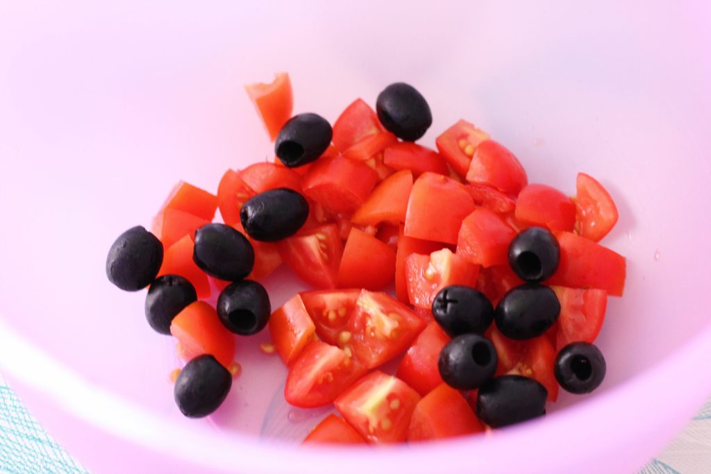 • Inzwischen setzen Sie einen Topf mit Wasser und grobem Salz auf das Feuer. Sobald das Wasser kocht, kochen Sie die Nudeln für die auf der Packung angegebene Zeit, sie sollten bissfest sein. Ich habe halbgerillte Penne gewählt. Wenn die Nudeln gekocht sind, lassen Sie sie abtropfen und spülen Sie sie unter kaltem fließendem Wasser ab. Nehmen Sie jetzt eine Schüssel, fügen Sie die schwarzen Oliven hinzu. Waschen Sie die Kirschtomaten gründlich, schneiden Sie sie in Hälften oder kleinere Stücke, fügen Sie sie zu den schwarzen Oliven hinzu, geben Sie dann die Paprika und die Zucchini hinzu, die inzwischen abgekühlt sind, und schließlich die Nudeln. Mischen Sie alles gut, fügen Sie noch einen Schuss extra natives Olivenöl hinzu, probieren Sie es und salzen und pfeffern Sie gegebenenfalls nach Belieben. Zum Schluss können Sie zerkleinerte frische Basilikumblätter hinzufügen.
