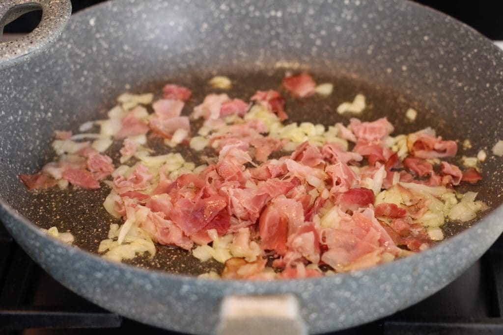 Sie können wählen, ob Sie den Speck hinzufügen möchten oder nicht, oder Sie können Pancetta verwenden