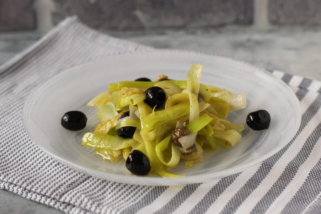 Zum Schluss mit Salz und schwarzem Pfeffer abschmecken, umrühren und sofort Ihre Porree mit Oliven und Kapern servieren. Sie sind einfach, aber sehr lecker.