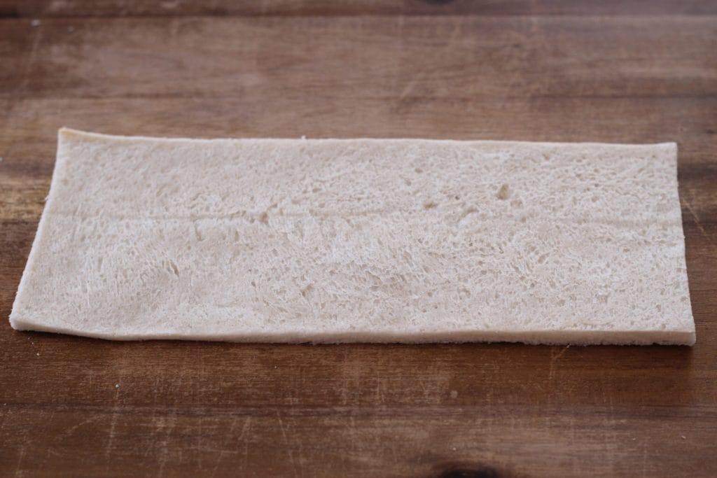 • Bereiten wir nun die Sandwich-Röllchen vor. Nehmen Sie das Sandwichbrot, die langen Scheiben ohne Rinde, legen Sie sie auf ein Schneidebrett und rollen Sie sie mit dem Nudelholz aus, um sie zu verdünnen. Streichen Sie nun die Thunfischcreme darauf. Rollen Sie die Röllchen auf. Wickeln Sie sie fest in Frischhaltefolie und verschließen Sie auch die Enden wie Bonbons und legen Sie sie für ein paar Stunden in den Kühlschrank. Wenn Sie möchten, können Sie die Röllchen auch über Nacht im Kühlschrank lassen.