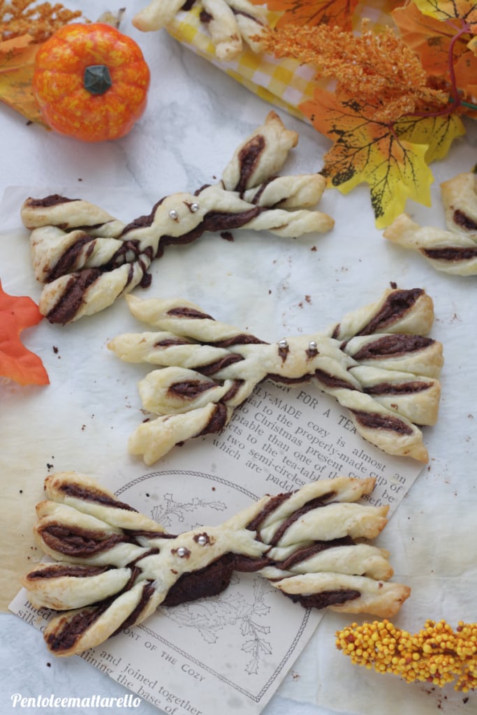 Mit der Ankunft der Herbstsaison, wenn die Sonnentage kürzer werden und das schlechte Wetter uns oft zu Hause hält, haben wir alle immer Lust, etwas Süßes und Leckeres zu essen, als könnten wir nicht darauf verzichten….So habe ich nach dem Abendessen mit Blätterteig Spinnen voller Schokolade zubereitet, um die dringenden Bitten meiner Kinder zu erfüllen und die Müdigkeit des Tages mit „Süße“ zu absorbieren.