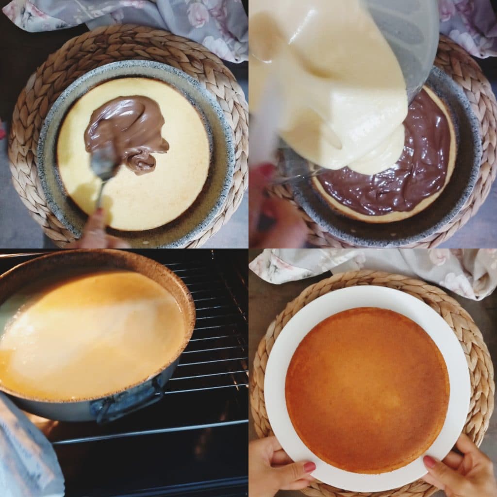 Aus dem Ofen nehmen und die Nutella auf die Kuchenschicht streichen, ohne über die Ränder zu gelangen. Mit dem restlichen Teig bedecken und weitere 15 Minuten backen. Wenn der Kuchen fertig ist, etwas abkühlen lassen.