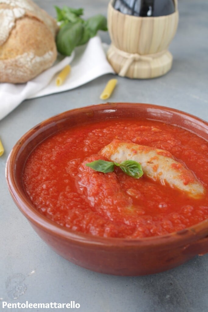 Wie Sie sehen werden, ist das Verfahren sehr einfach und schnell. Mit dieser Soße können Sie jede Art von Pasta würzen, und wenn Sie eine schöne Ofenpasta zubereiten möchten, zerkrümeln Sie einfach die Wurst.