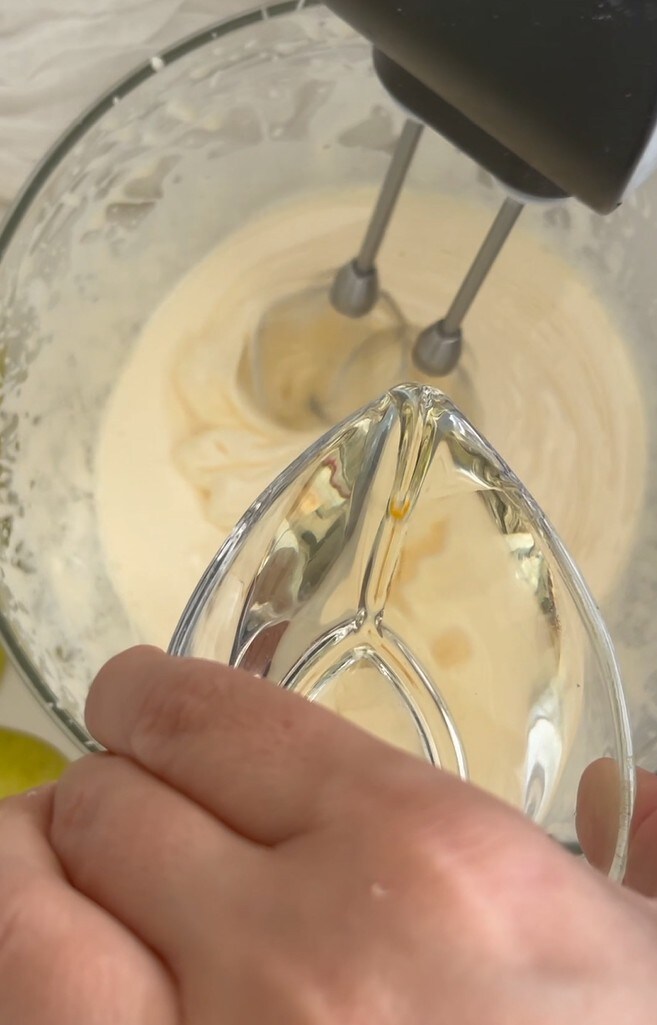 Während des Rührens das Öl in einem dünnen Strahl hinzufügen.