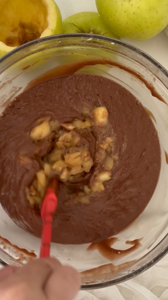 Ein wirklich super leckeres und schönes Frühstück zum Anschauen, Apfelkuchen mit Kakao in der Apfel gebacken. Vor einiger Zeit veröffentlichte ich ein ähnliches Rezept, aber ohne Kakao, nämlich den Ein-Personen-Kuchen in der Apfel ohne Waage. In diesem Fall habe ich jedoch die Waage benutzt, da ich mit demselben Teig auch einen saftigen Apfelkuchen gemacht habe. Später werde ich das Rezept aufschreiben. Ich persönlich liebe diese Art von Rezepten, sowohl weil ich Äpfel liebe wie die meisten Menschen, als auch weil man mit wenigen Handgriffen einen wirklich großartigen und duftenden Ein-Personen-Kuchen für das Frühstück und als Snack bekommt. Apfelkuchen sind bekanntlich alle extrem gut, aber den Kuchen im Apfel zu backen, versichere ich Ihnen, hat etwas Besonderes. Probieren Sie es aus und lassen Sie mich wissen. Wenn Sie auch eine Idee für Halloween für Ihre Kinder suchen, könnte dies eine andere Idee sein. Verwenden Sie den gleichen Kakaoteig mit rotem Apfel und ein paar Halloween-Dekorationen darauf.