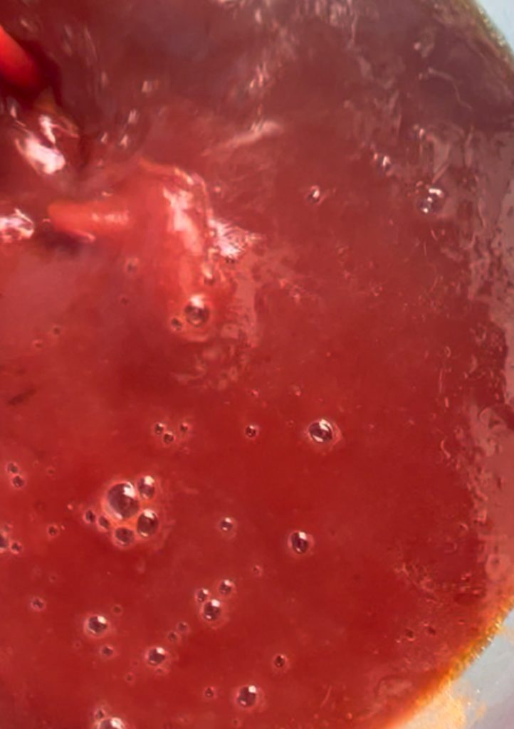 • Ich habe sie dann durch ein Sieb passiert, um die Kerne zu entfernen, die ich nicht besonders mag, aber ihr könnt diesen Schritt weglassen, wenn sie euch nicht stören.