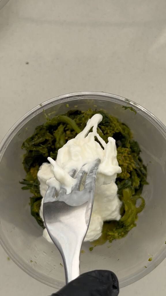 Die Creme mit etwas Stracciatella darüber genießen. Mit Crostini oder als Sauce für Pasta oder Risotto servieren.
