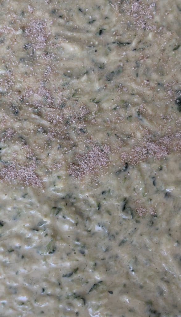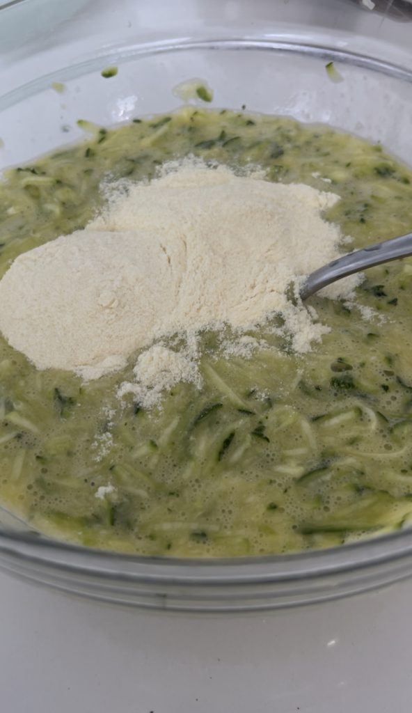 Leicht verquirlen und die geriebene Zucchini hinzufügen.
